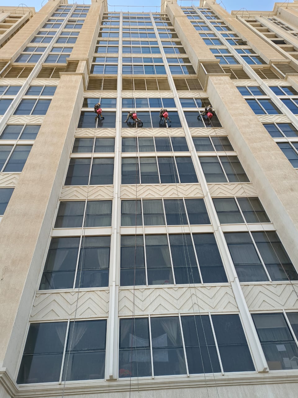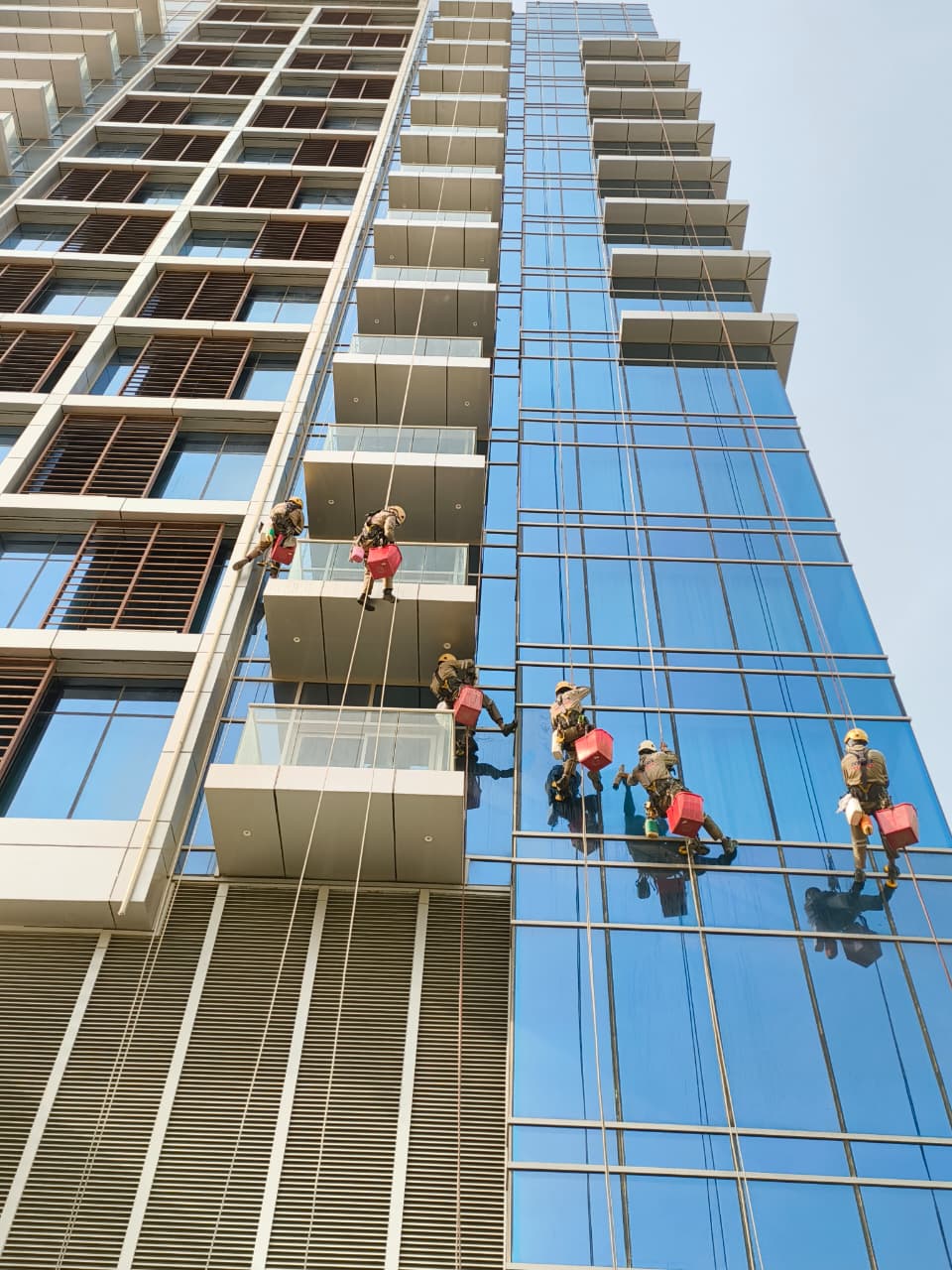 Rope Access Cleaning by Dougra Services — delivering immaculate, streak-free windows and facades that enhance your building’s image with clarity and perfection.