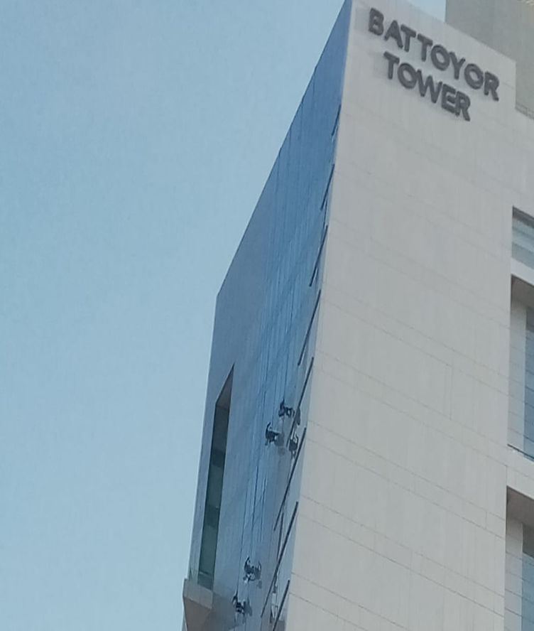 Dougra Services carried out a complete façade cleaning project for the prestigious Battoyor Tower in Dammam, a high-rise building of 22 floors. The work was executed using rope access techniques (IRATA-certified) combined with specialized cleaning equipment and eco-friendly solutions, ensuring both safety and efficiency at great heights.