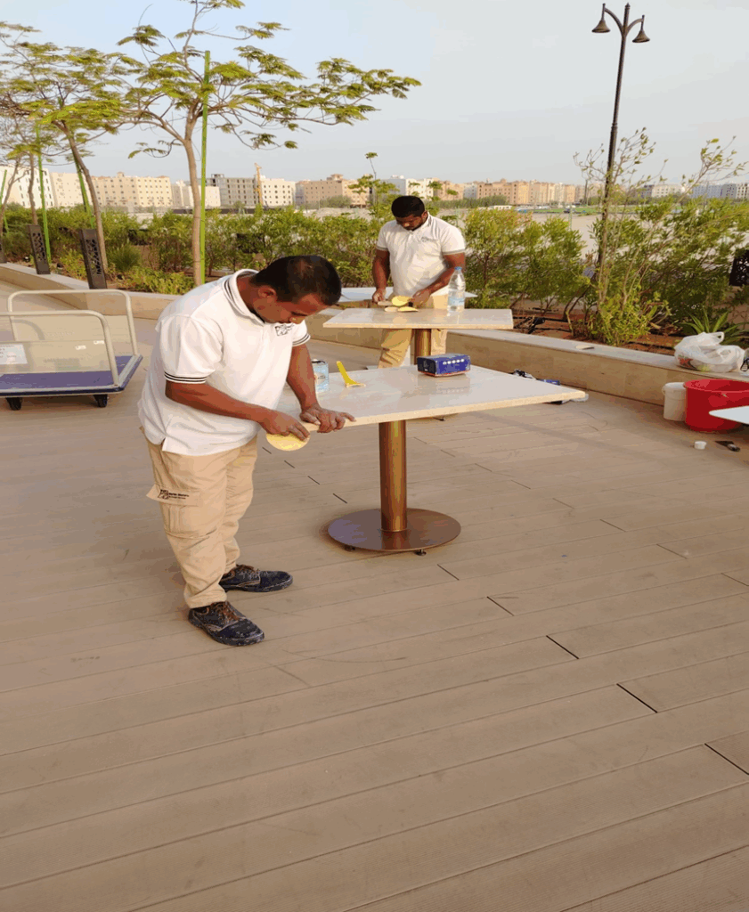 Marble Masters by Dougra Services successfully completed a marble restoration project at the Hilton Hotel, Al Khobar. The scope of work included the restoration of the restaurant floor marble as well as the marble dining tables.