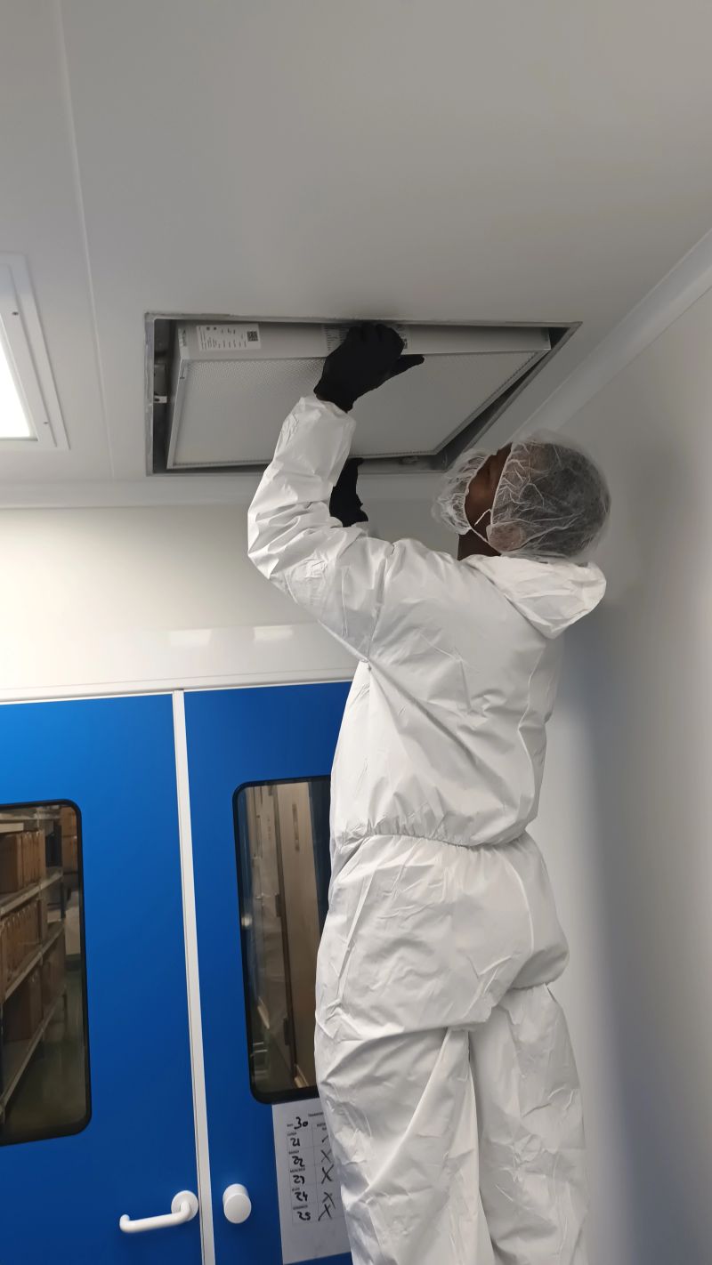 • Targeted disinfection (ULV fogging) — apply an EPA/ESMA-approved, low-odor product inside ducts and registers.